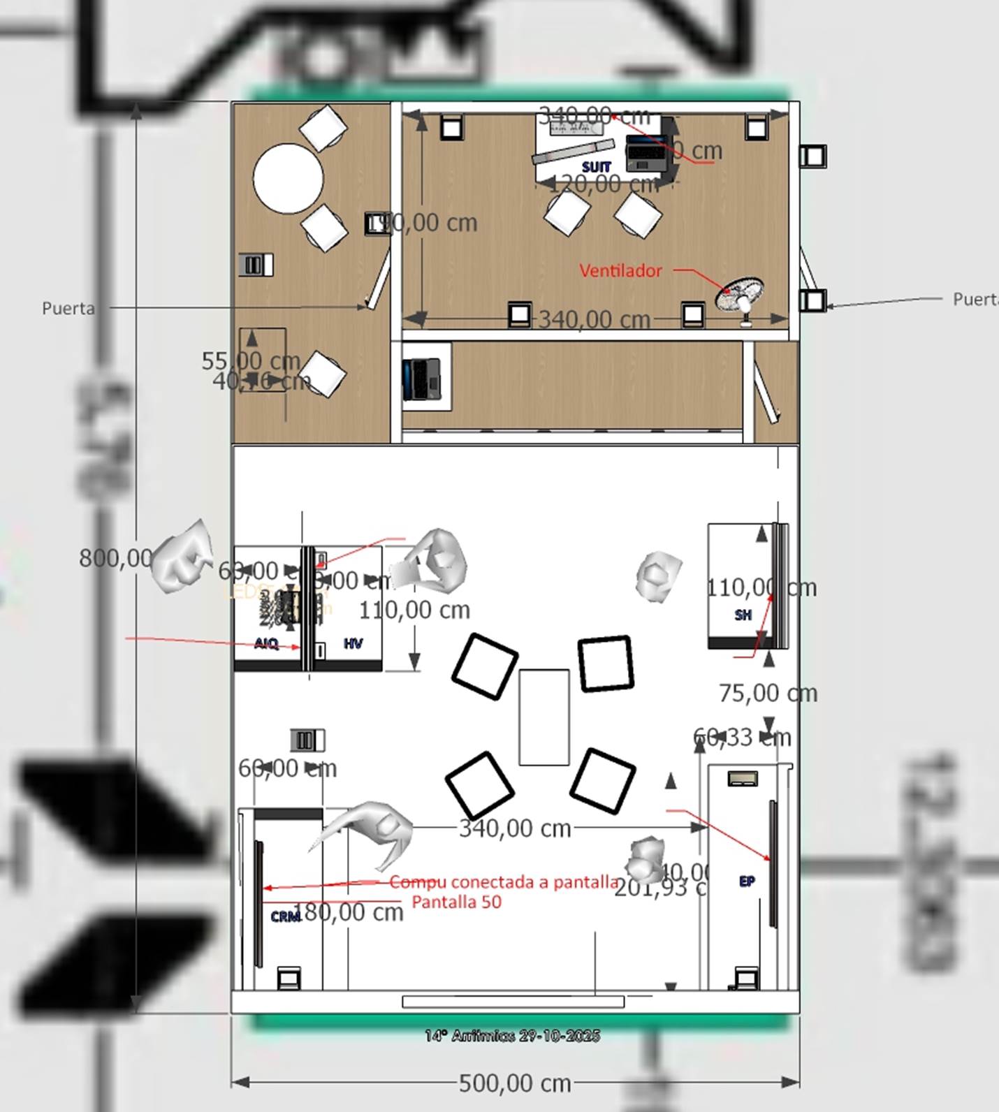 Sector suit innovación panelera perimetral ploteadas con puertas de ingreso