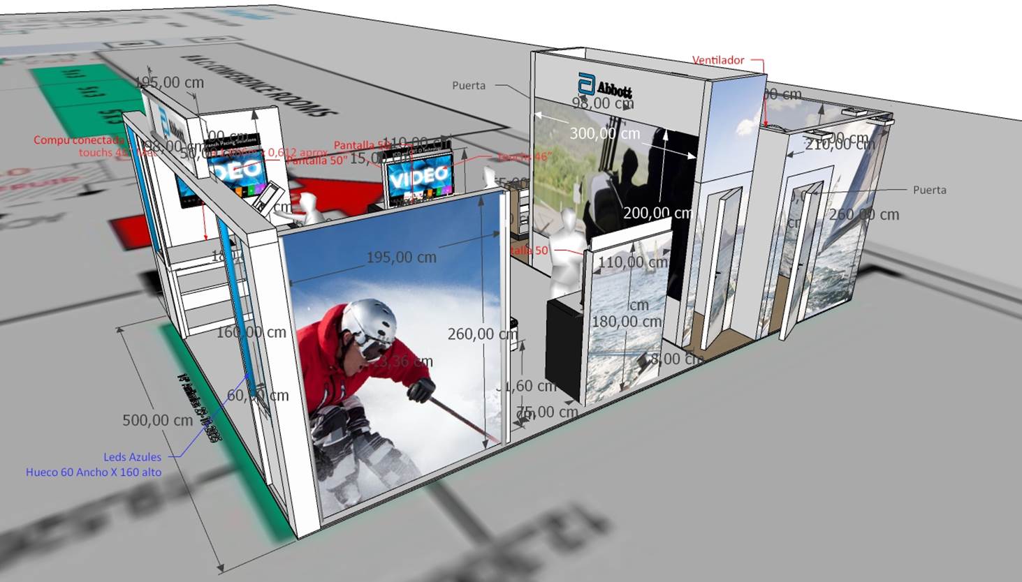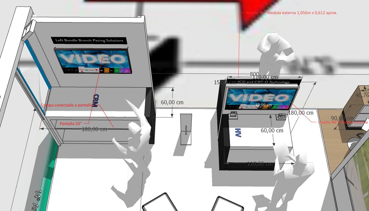 Mobiliario incluido en el stand según renders. Otro tipo de mobiliario tiene costo adicional.