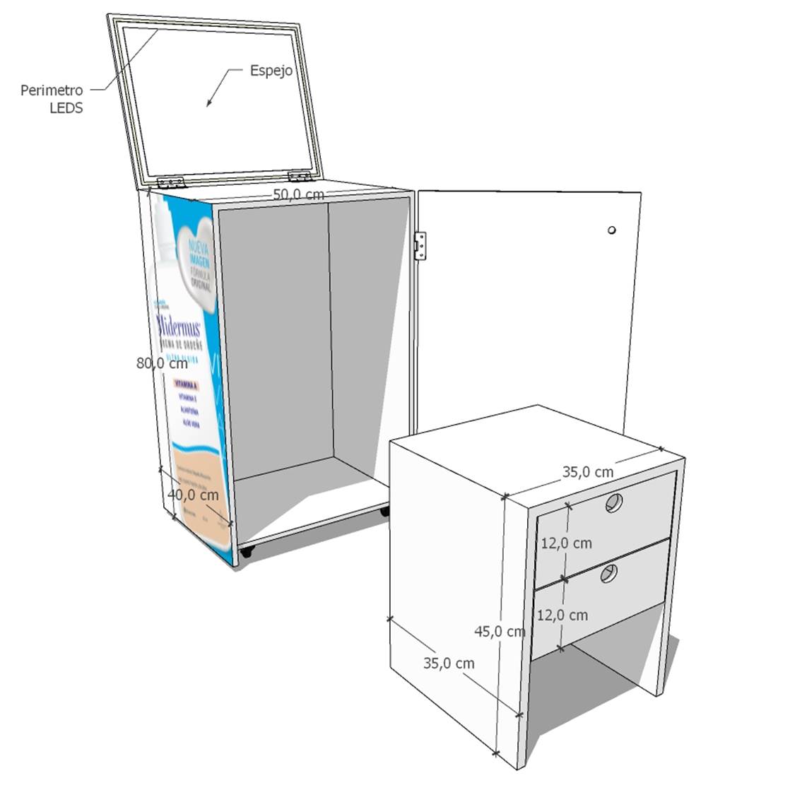 Tapa pivotante con espejo espejo interno y leds perimetral en espejo.