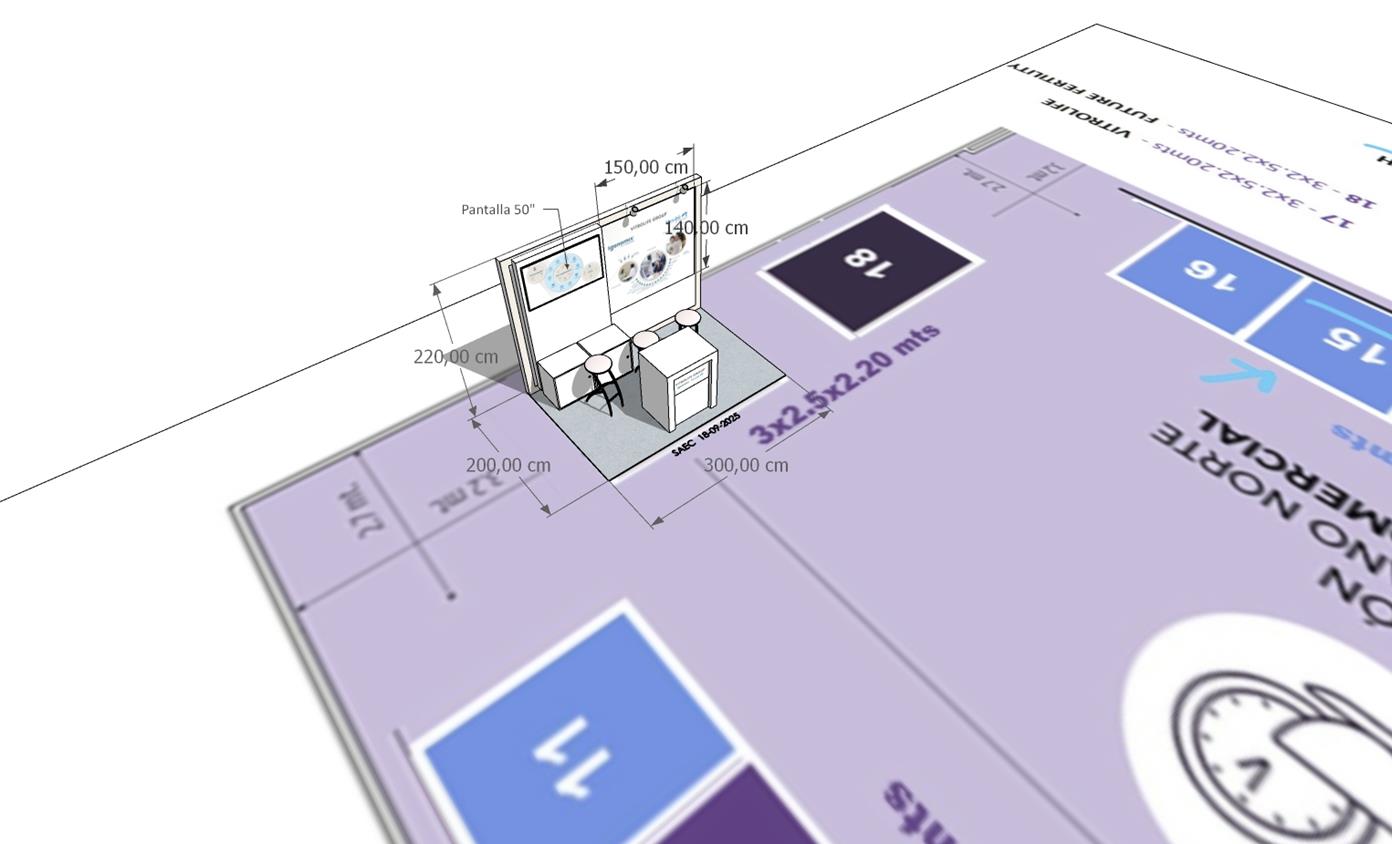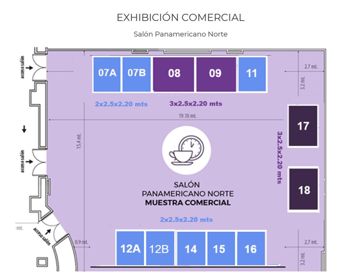 área de cada espacio estará marcada con cinta de papel en el piso.